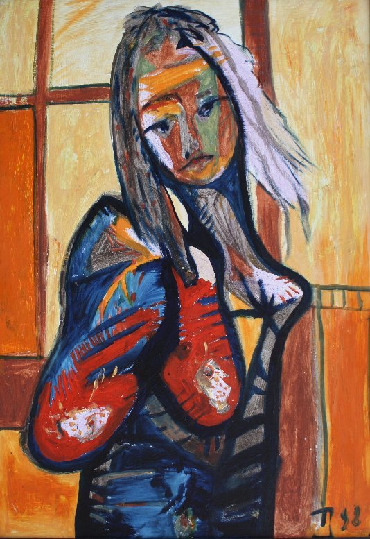 Menschen sind ein zentrales Thema für mich. Dabei gebe ich sie nicht fotorealistisch wieder, sondern male sie, wie ich sie sehe, was mich an ihnen zum Darstellen reizt. Bei Menschengruppen geht es mir vor allem um die Beziehungen. Es ist also jeweils ein sehr persönlich gefärbtes Bild, das entsteht. Technisch finden Acryl- und Ölmalerei, Mischtechniken und Übermalungen statt.